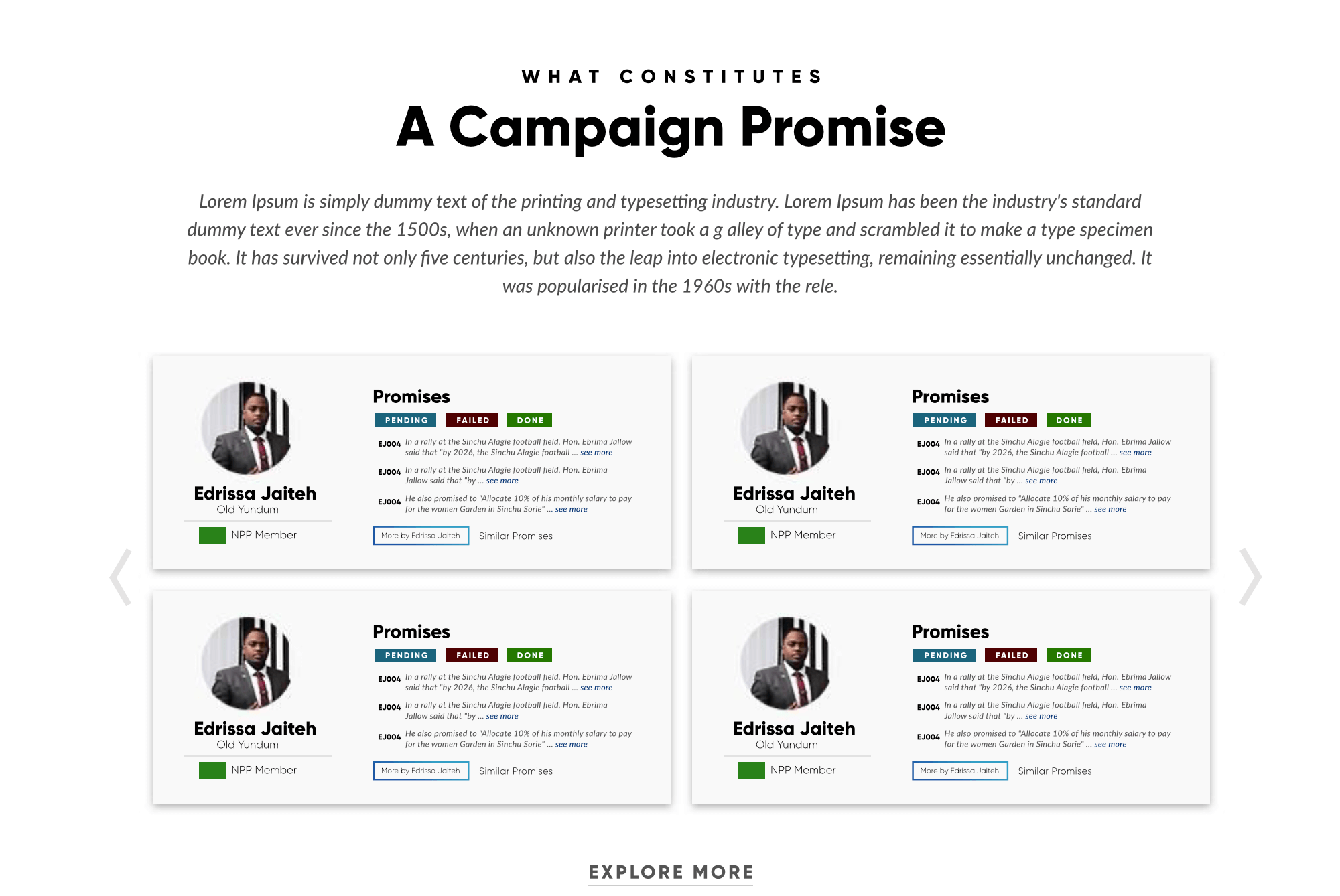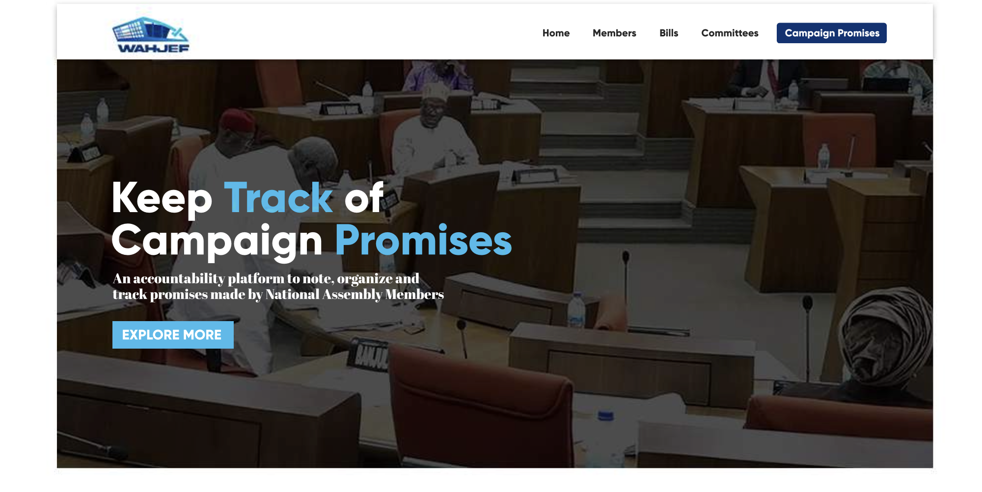 Enhancing Transparency and Accountability in Governance. Wahjef is a groundbreaking platform designed to revolutionize the way campaign promises made by national assembly members are tracked and monitored. This innovative system goes beyond tracking promises; it provides citizens with in-depth information about parliament members, their committee involvement, and a comprehensive database of bills and acts. With Wahjef, citizens gain unprecedented access to the legislative process, empowering them to actively engage in monitoring and evaluating the performance of their elected representatives.